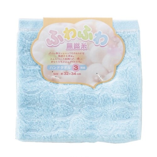 ハンドタオル ふわふわ無撚糸 3枚 ブルー