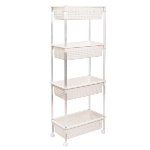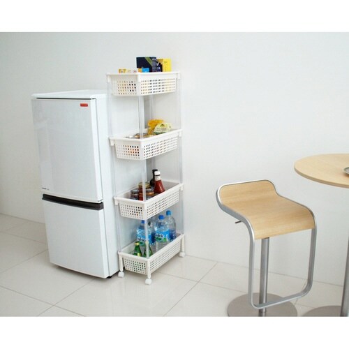 バスタオルやバスローブなどサニタリー用品の収納に便利なバスケットワゴンです。 4段タイプです。 限られた空間を有効活用できます。 トレーはメッシュなので通気性抜群です。 |