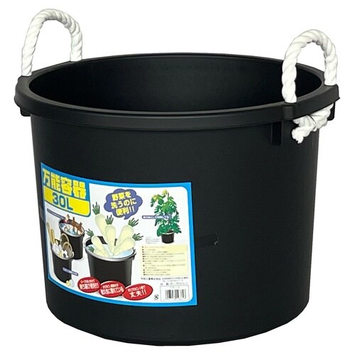 野菜洗い、飲料水の冷却など、様々な用途で使用できるタライ30Lです。 アウトドアグッズ・ガーデニング用品などの収納としても活躍します。 ロープの持ち手付きです。 |