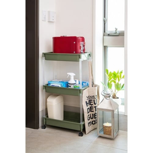 玄関収納 ワゴン 3段 抗菌加工 キャスター付き ウイルスト カーキ
