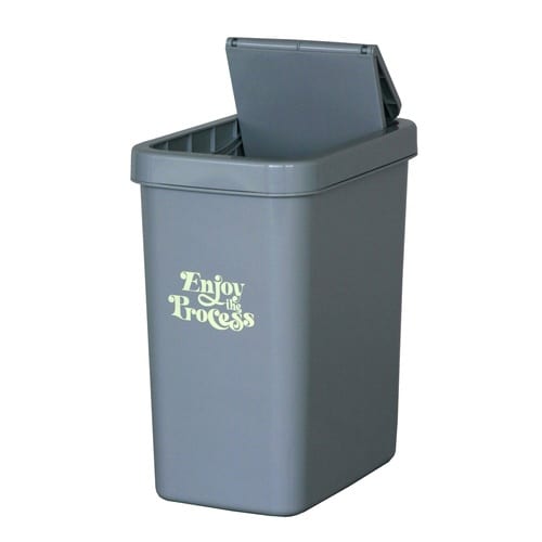 英字ロゴがアクセントのスタイリッシュなゴミ箱です。 片手でスライドさせるだけでフタをなめらかに開閉できます。 棚やカウンターの下でも上部のスペースを気にせずに置くことができます。 |