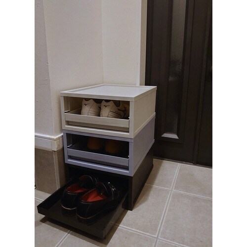 スライド式のトレーが付いた収納ケースです。 片手で出し入れできて取り出しやすいです。 収納しているものが分かりやすく迷わず出し入れできます。 |
