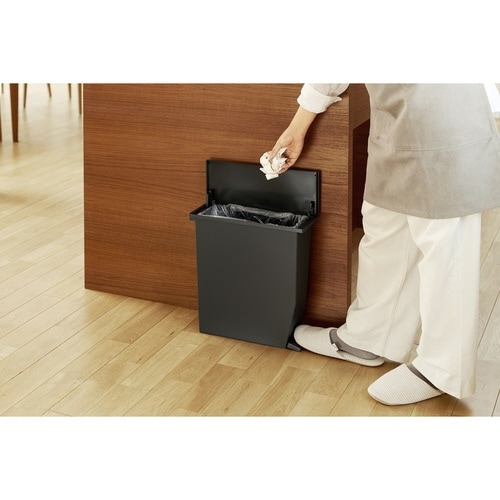 両手がふさがっていても簡単にふたをあけられる、非接触で衛生的なペダル式ゴミ箱です。 置きたい場所に合わせてふたの開閉方向が変更できます。 |