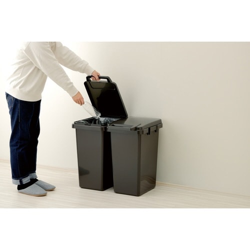 インテリアに馴染むベーシックなモノトーンのふた付きゴミ箱です。 大きくて握りやすいハンドルが付いているので片手で簡単に開閉できます。 |