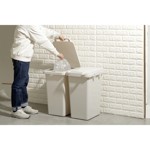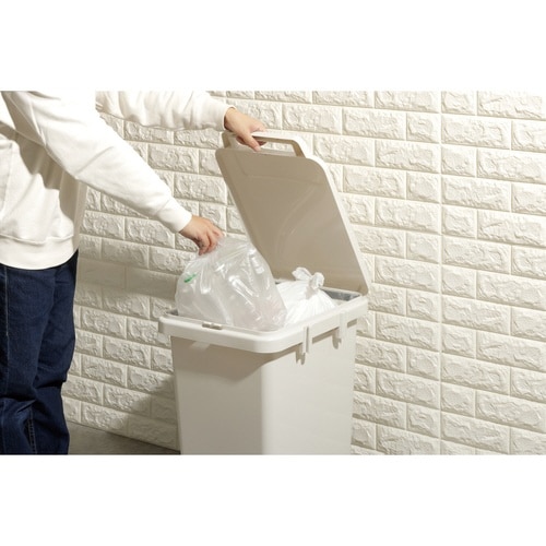 インテリアに馴染むベーシックなモノトーンのふた付きゴミ箱です。 大きくて握りやすいハンドルが付いているので片手で簡単に開閉できます。 |