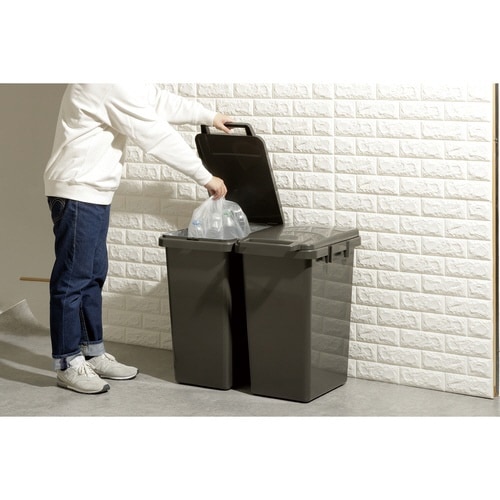インテリアに馴染むベーシックなモノトーンのふた付きゴミ箱です。 大きくて握りやすいハンドルが付いているので片手で簡単に開閉できます。 |