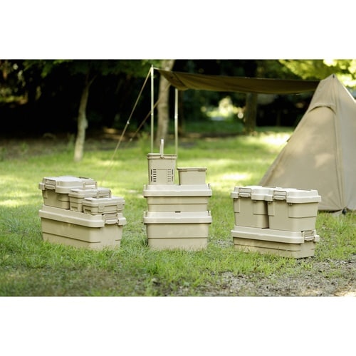 頑丈さが特徴のフタ付き収納ボックス トランクカーゴTC−70Sです。 アウトドアシーンにおすすめの収納アイテムです。 イスやテーブルにもなるフラットなフタ形状と耐久性です。 |
