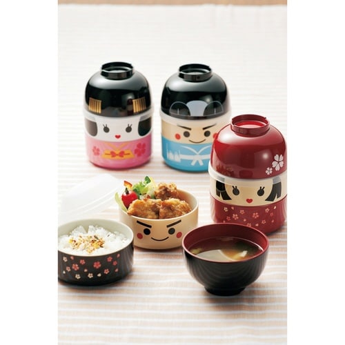 愛嬌たっぷりの可愛いこけし型弁当箱850mlです。 頭の部分はお椀になっているので、味噌汁などの汁物が外出先でも楽しめます。 上段の中蓋はおかずを潰さずふんわり盛り付けできるドーム型です。 |