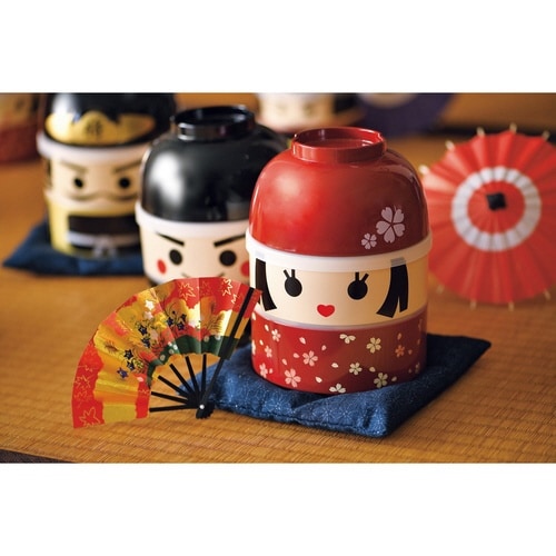 愛嬌たっぷりの可愛いこけし型弁当箱850mlです。 頭の部分はお椀になっているので、味噌汁などの汁物が外出先でも楽しめます。 上段の中蓋はおかずを潰さずふんわり盛り付けできるドーム型です。 |