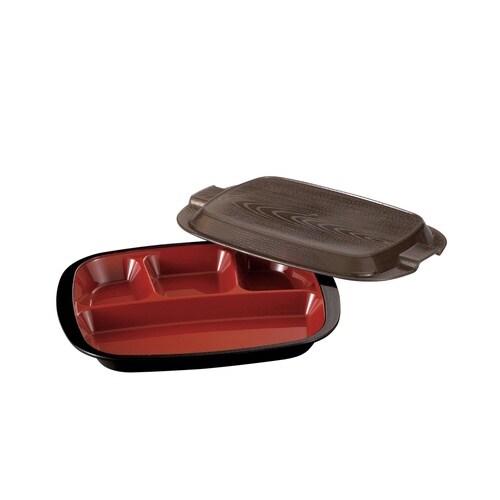 ランチプレート フタ付き 家弁 HAKOYA 木目 700ml プラスチック 日本製 ブラウン