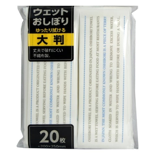 ゆったり拭ける大きめサイズのおしぼりお得な20個入りです。 ご家庭やスポーツ、レジャーなど様々なシーンで活躍します。 引っ張っても破れにくく丈夫な不織布素材です。 |