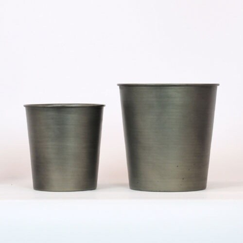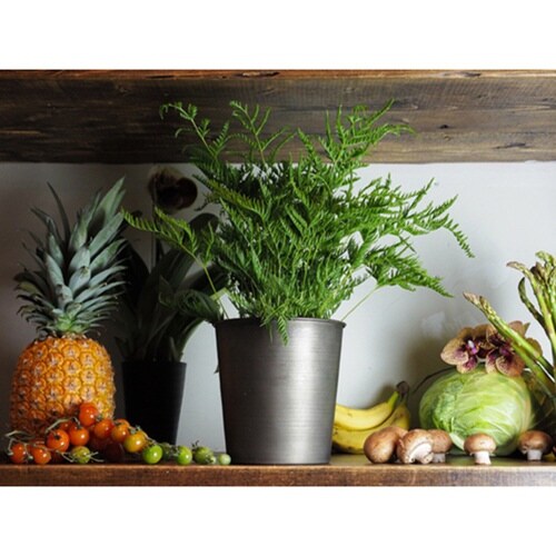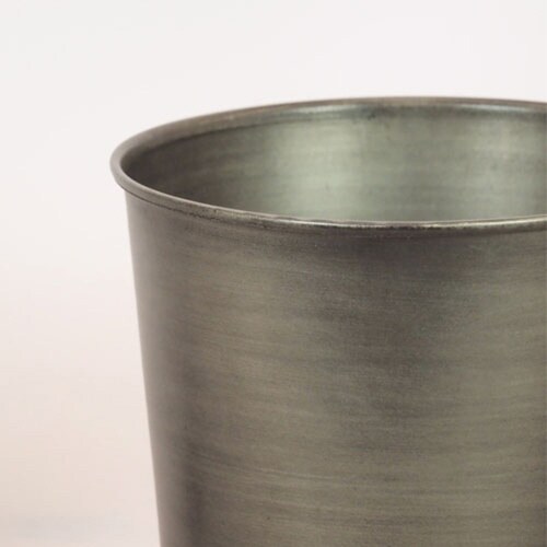 一枚の板金から作られており、水漏れしない構造になっています。 どことなく工業的で、グリーンやお花が映える味わい深い素材が特徴です。 |