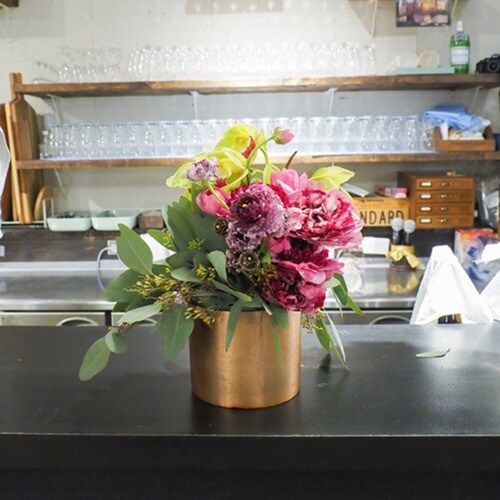 重厚感と金属感が合わさった高級感あるアルミニウム金属の花器です。 花を生け込んでアレンジメントを楽しんだり、花桶ごと入れて鉢カバーとしても使えます。 |