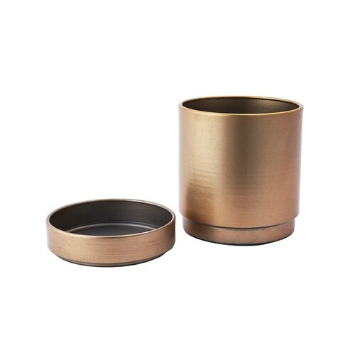 植木鉢 MC円柱メタルECOポット 受け皿付き 直径10cm アンティークゴールド