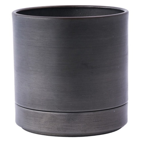 植木鉢 MC円柱メタルECOポット 受け皿付き 直径12cm ダークブラック