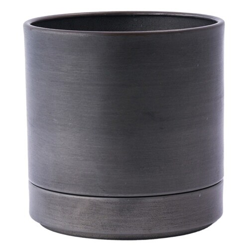 植木鉢 MC円柱メタルECOポット 受け皿付き 直径15cm ダークブラック