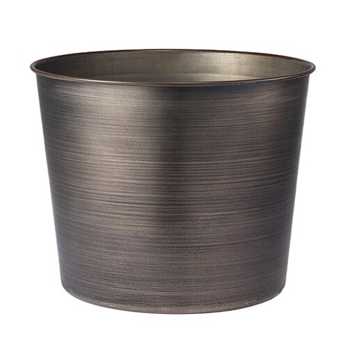 一枚の板金から作られており、水漏れしない構造になっています。 どことなく工業的で、グリーンやお花が映える味わい深い素材が特徴です。 |