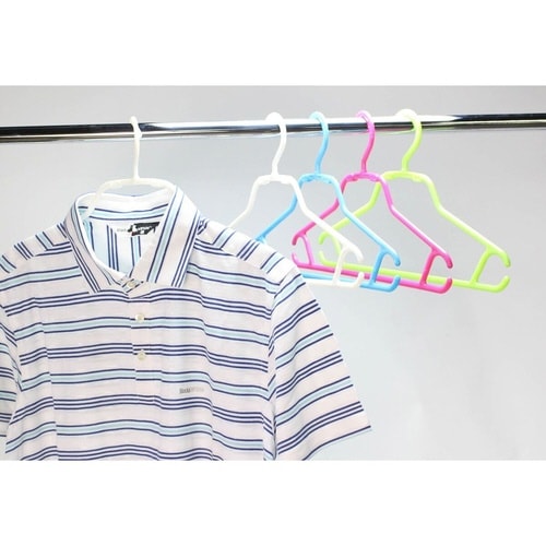 ハンガーの肩の部分を握ると変形し、衣類にセットしやすくなる機能的なハンガーです。 シャツの襟首を伸ばさずにセットできます。 収納や洗濯時にとても便利です。 フックは回転します。 |