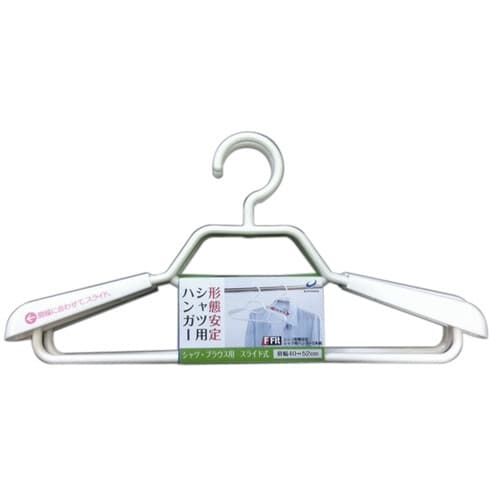 肩部分が伸縮してサイズ調節可能な、シャツ用ハンガーです。 肩幅が40cmから52cmスライドフィットします。 ワイシャツの型崩れを防ぎます。 |