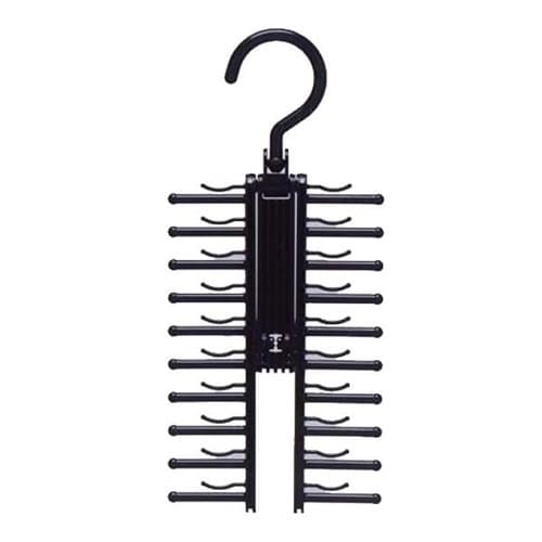 左右のネクタイ掛け部分を動かすと、クロスしてネクタイが取り出しやすくなります。 回転フックをクルッと回せば180度逆転するので、季節ごとに分別するのにも便利です。 |