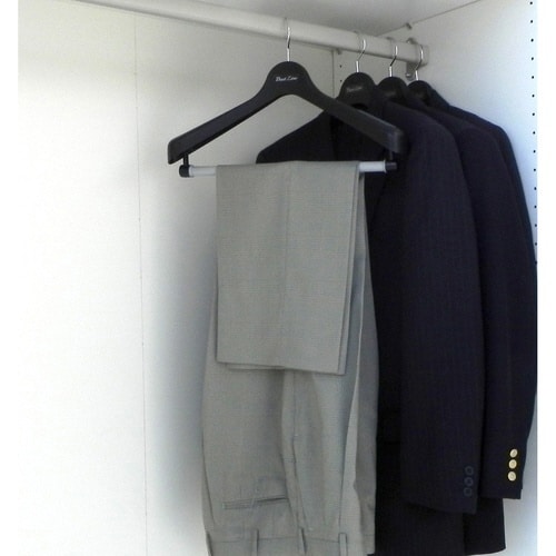 スーツの型崩れを防ぐハンガーです。 ハンガーの横幅が50cmなので、大柄な男性の衣類に適しています。 スラックスを掛けられるバーが付いているので、スーツを上下で掛けておけば、すっきり収納できます。 |