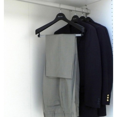 スーツの型崩れを防ぐハンガーです。 ハンガーの横幅が45cmなので、男性の衣類に適しています。 スラックスを掛けられるバーが付いているので、スーツを上下で掛けておけば、すっきり収納できます。 |