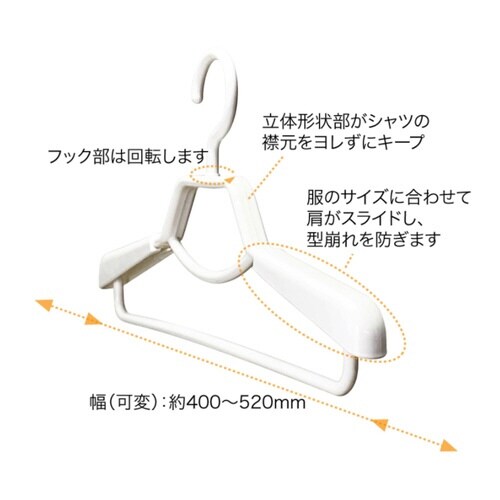 衣類が引き立つシャツハンガー 同色2本組 衣類に合わせて肩幅を調節できる シンプルが美しい「モノクローゼット」シリーズ シャツの襟がよれない形状 360度回転するフック |