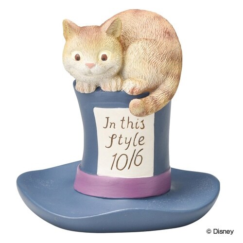 ふしぎの国のアリスに登場する「チェシャ猫」が帽子屋マッドハッタ―のハットの上に座っているデザインのアクセサリートレイです。 チェシャ猫のしっぽには指輪を掛けることができます。 |