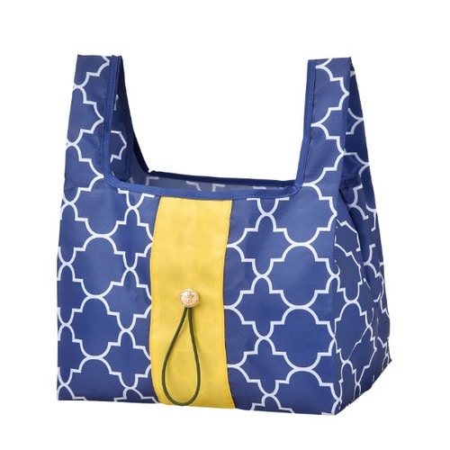 モダンな和柄のエコバッグです。 マチが広めだからコンビニ弁当も傾けずに持ち運べます。 使わない時は、折り畳んで本体に付属しているゴムで巻けばコンパクトサイズになります。 |