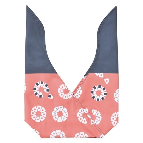 大きなリボンがポイントになった包みやすくてお洒落なデザインのあづま袋です。 よーく見るとおにぎりの柄になっています。 |
