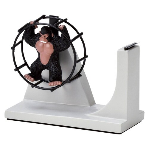 今にも動き出しそうなリアルな動物のテープディスペンサーです。 力強い動物が回し車を回しているように、テープを出すお手伝いをしてくれます。 |