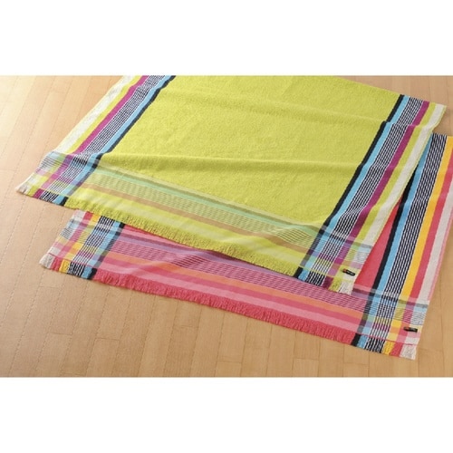 フリンジ付きのおしゃれなデザインとカラフルな色使いが目を引くポルトガル製の大判タオルです。 緻密なパイル仕上げで滑らかで気持ちのよい肌触りを実現した、先染めドビー織りです。 |