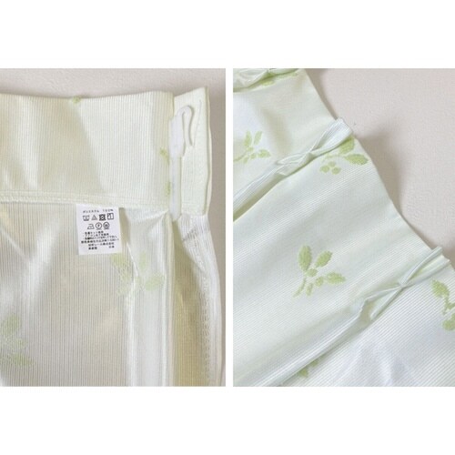 レースカーテン リーフ柄 UVカット パイルミラーレース 100×133cm 省エネ 2枚組 グリーン