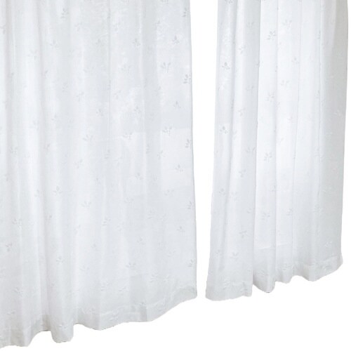 レースカーテン リーフ柄 UVカット パイルミラーレース 100×198cm 省エネ 2枚組 ホワイト