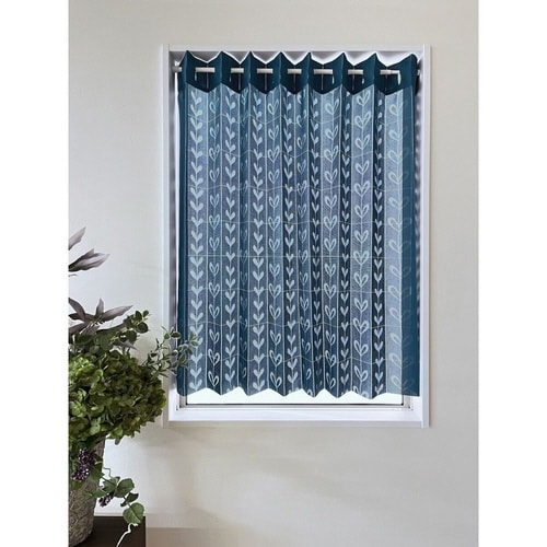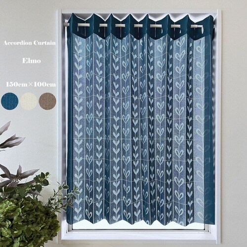 加栄レース アコーディオンカーテン リーフ柄 フリーカット 150×100cm ネイビー 9322-8329