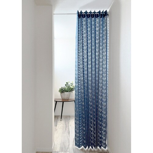 アコーディオンカーテン リーフ柄 フリーカット 150×250cm ネイビー
