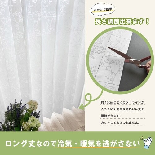 アコーディオンカーテン アラベスク柄 フリーカット 150×250cm UVカット ホワイト
