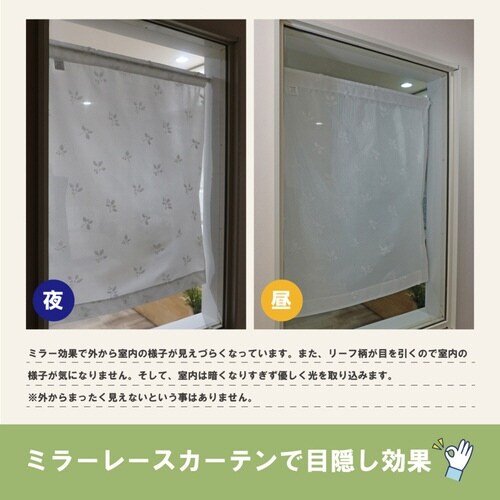 レースカーテン リーフ柄 小窓 UVカット ミラーレース 70×90cm 省エネ ホワイト