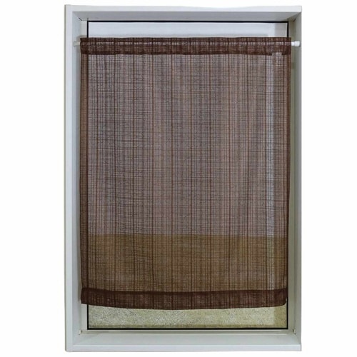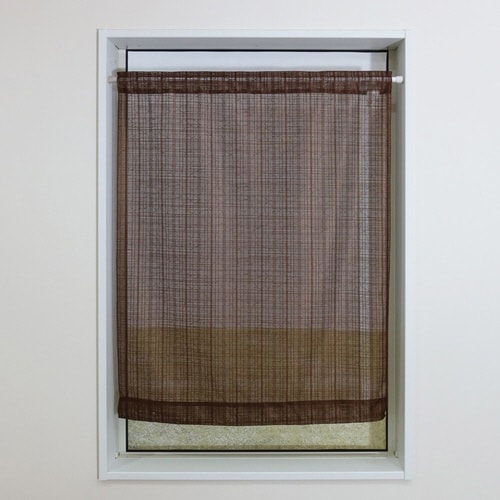レースカーテン 小窓 ランダムストライプ柄 70×90cm ブラウン