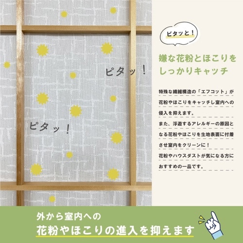 機能性とデザイン性を兼ね備えた、障子に貼るレースです。 特殊な繊維が花粉とほこりをしっかりキャッチします。 高い断熱性と保温性で夏は涼しく、冬は暖かいです。 |