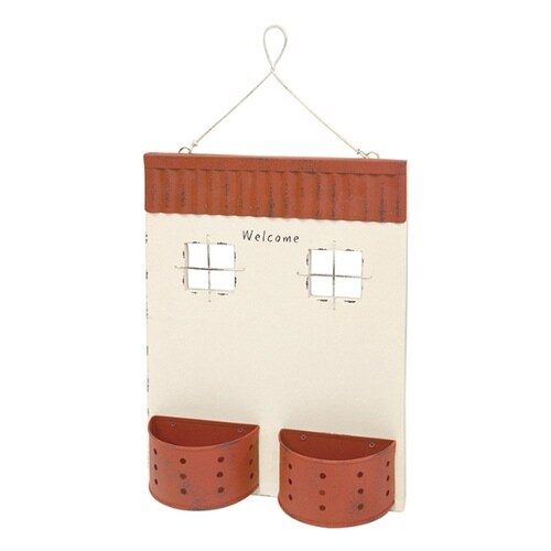 プランター 壁掛け ハンギングハウスダブルポット 幅25×奥行7×高さ48cm レッド