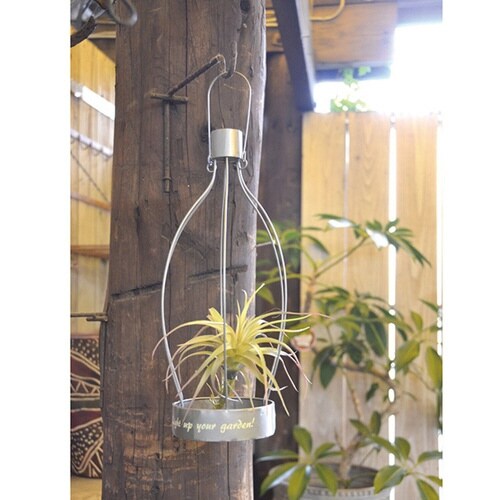 ランプをモチーフにしたプランターです。 細身でシンプルなデザインで、色はシルバーカラーです。 ワイヤーの部分を軽く曲げて隙間からそのまま鉢を入れることが可能です。 |