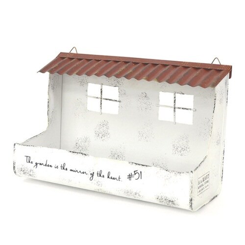 長く愛用されて塗装が剥がれた様子を丁寧なペイントで再現した壁掛けプランターです。 白いベースにカラフルなトタン屋根がかわいく、植物のグリーンがよく合います。 |