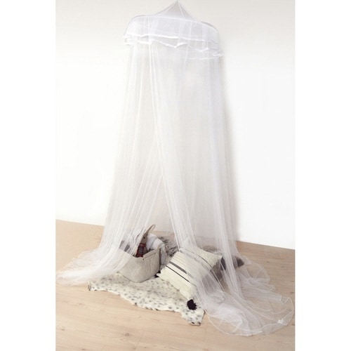フックに引っかけるだけで憧れのお姫様風べ度が作れる天蓋です。 ふんわりとしたシルエットにサテンのリボンとフリルがアクセントになっています。 |