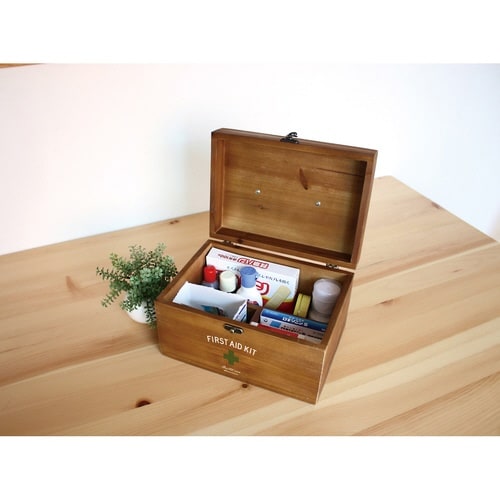 救急箱 収納ボックス Sサイズ 薬 木製 ファーストエイドボックス ブラウン ブラウン
