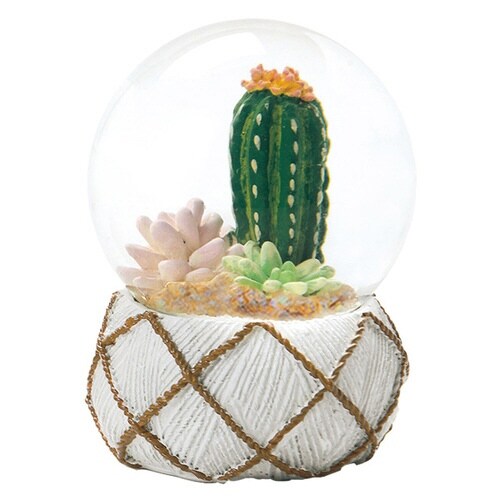 グリーンモチーフや多肉植物などを閉じ込めたオシャレでユニークなスノードームです。 こけ玉の様なデザインの土台もワンポイントです。 側に置くだけ、見ているだけで癒されます。 |