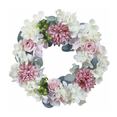 フェイクグリーンで作られたリースです。 飾るだけで壁面がぱっと華やぎます。 両手にちょうど収まる飾りやすいボリュームです。 壁や扉に掛けたり、立てかけたりできます。 |