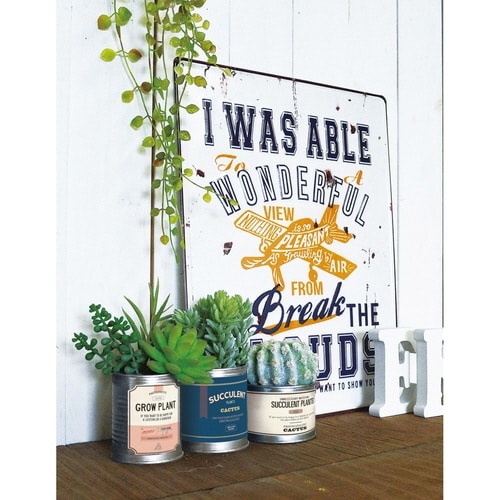 ヴィンテージな雰囲気のTIN缶に、肉厚な葉や茎がかわいいサキュレント(多肉植物)をアレンジした本物そっくりのフェイクグリーンです。 光触媒加工が施されていて、抗菌消臭効果が期待できます。 |
