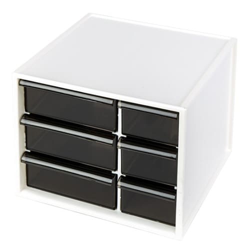 積み重ねられる卓上収納ケースです。 デスク周りの小物の整理・収納に最適です。 薬ケースやコスメボックスとしても使いやすいサイズです。 中を確認できる色付き半透明の引き出しです。 |