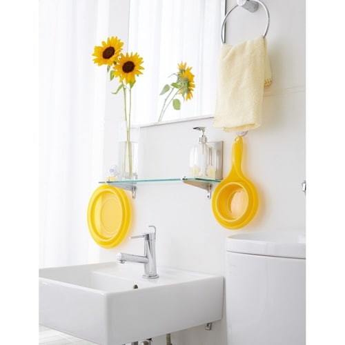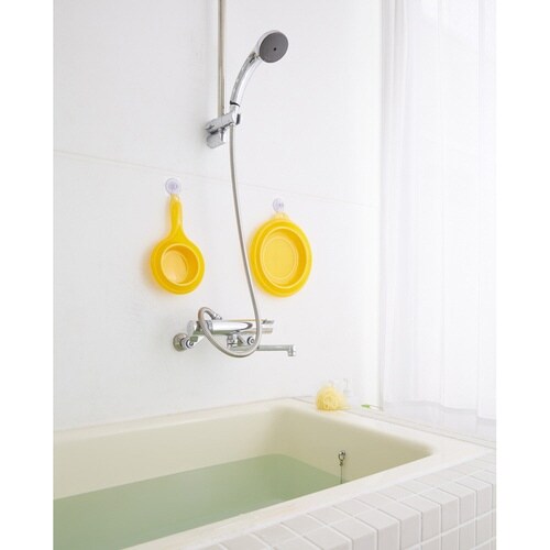 折り畳めてコンパクトに収納できる、やわらか素材のソフト手おけです。 フック等に引っ掛けて吊るして収納できます。 バスルームや洗面所など、さまざまな場所でお使いいただけます。 |